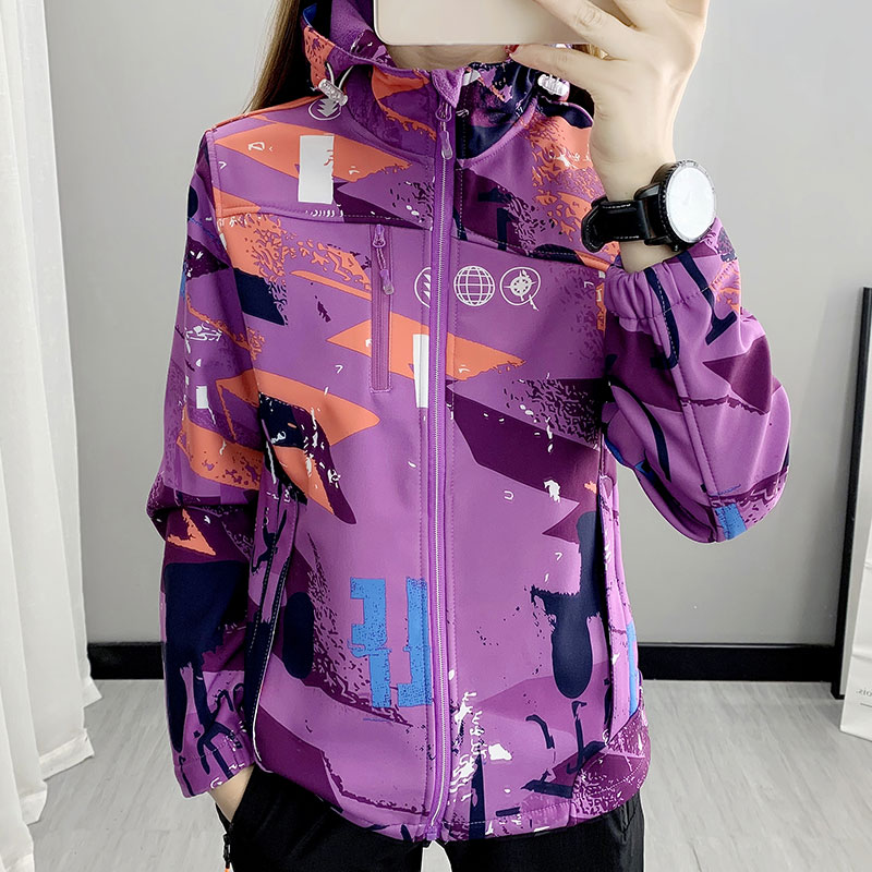 Submachine clothes woman 2022 spring and autumn soft shell grabbing suede windproof waterproof outdoor sports hiking mountaineering camouflated to man-Taobao