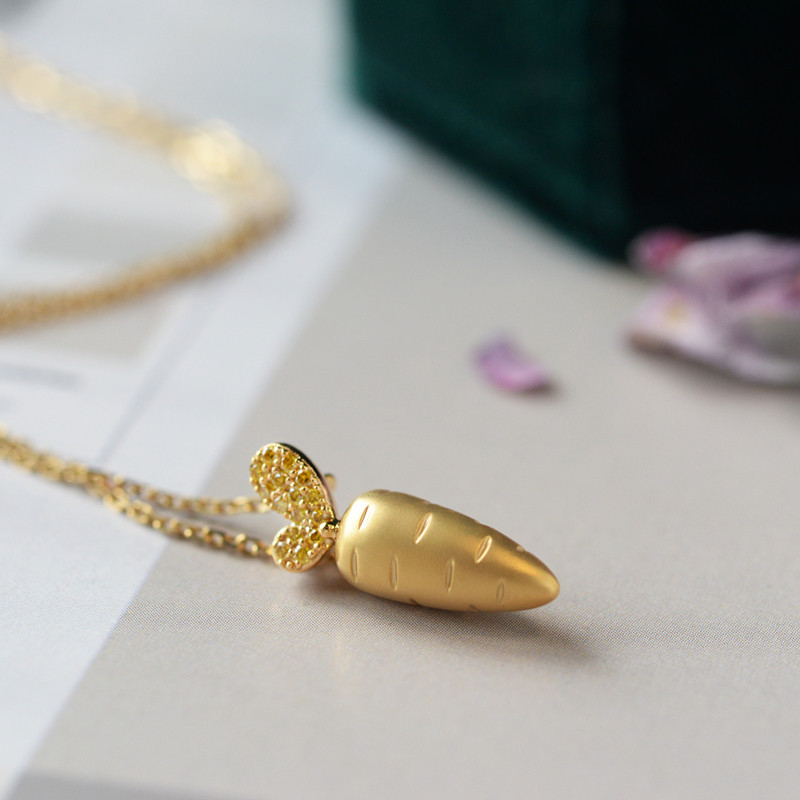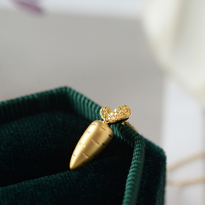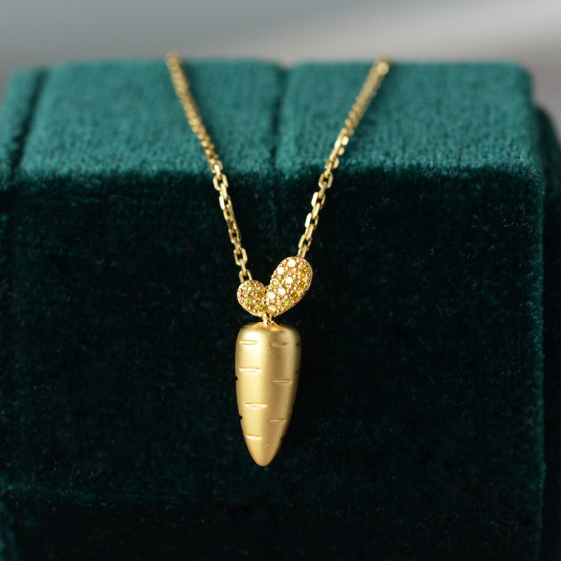 Super cute carrot 18K gold group inlaid with high-quality yellow diamond cute personality small pendant necklace