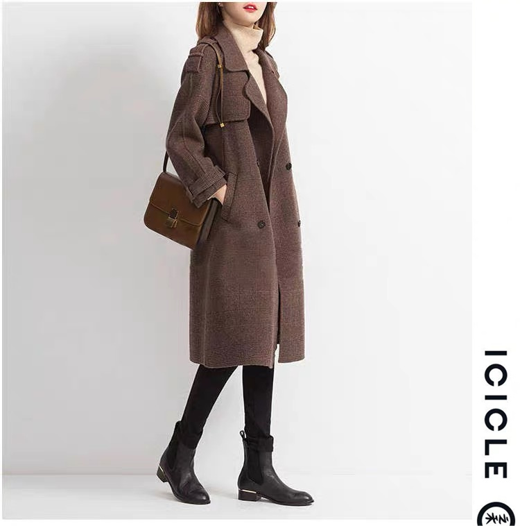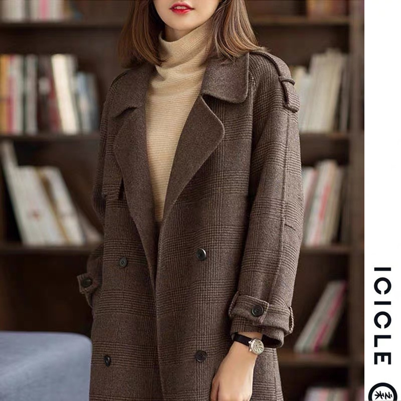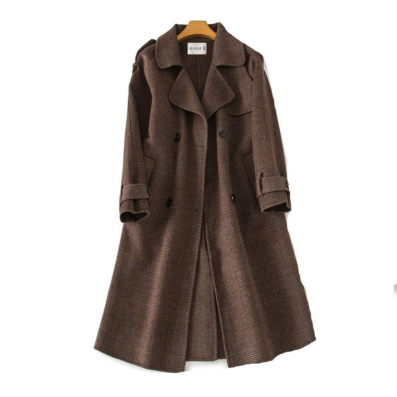Domestic counters 2022 autumn and winter new slim retro plaid double-sided woolen cashmere coat coat women