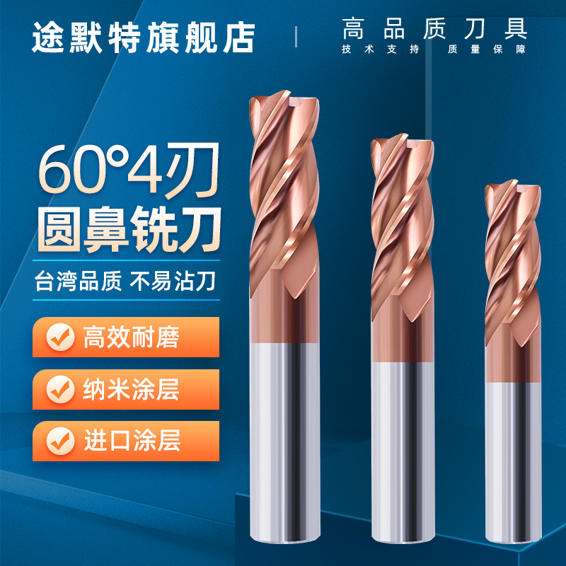 Tumote round nose milling cutter HRC 60 degree tungsten steel milling cutter alloy R angle nanocoated high hard end milling cutter