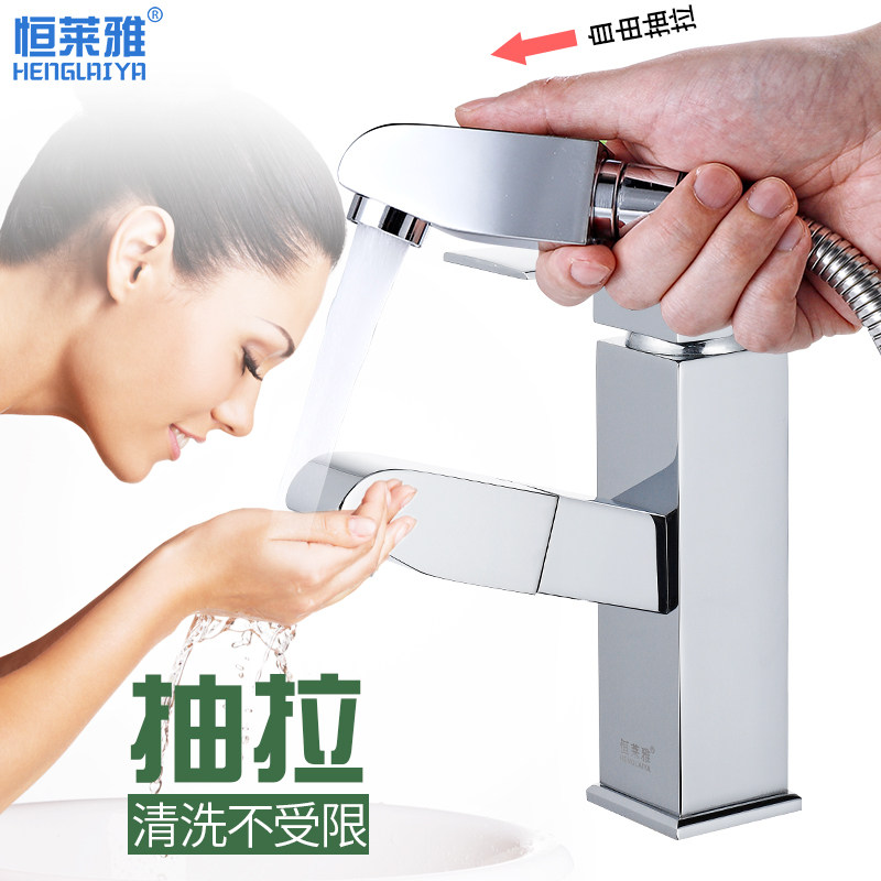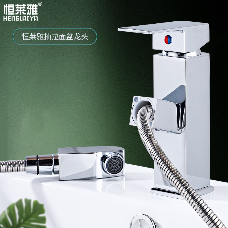All-copper pull-out faucet hot and cold washbasin powder room washbasin household basin basin retractable faucet