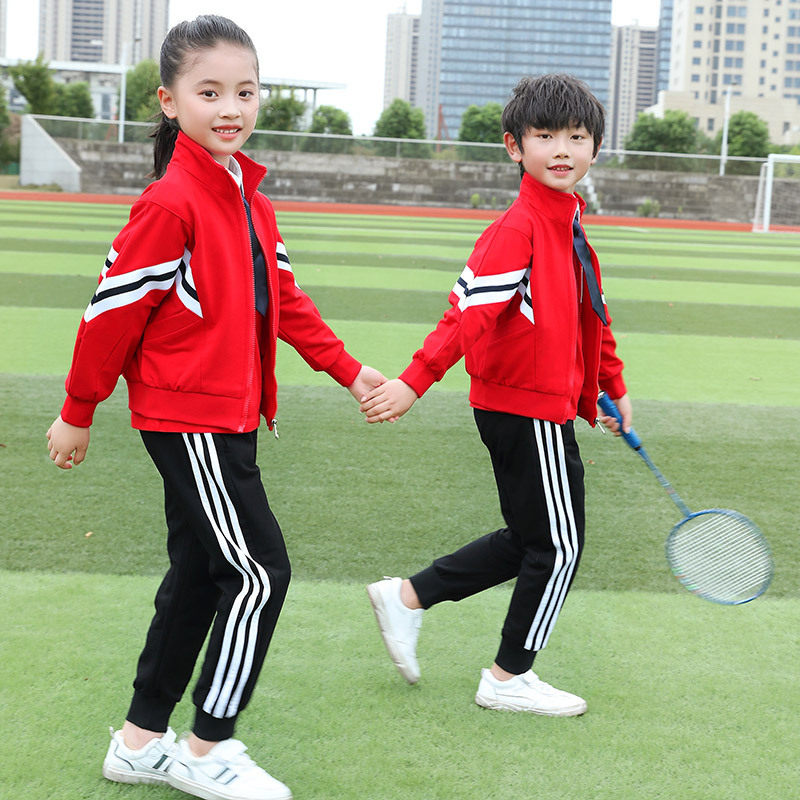 Elementary school uniform spring and autumn suit cotton red college style kindergarten garden uniform three-piece set of children's class uniform customization