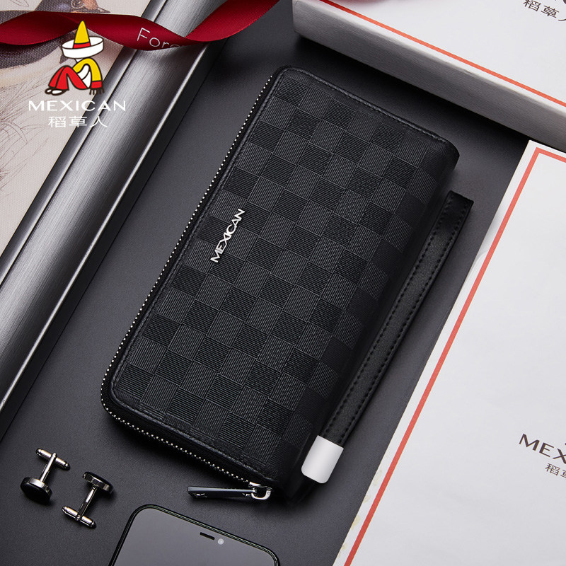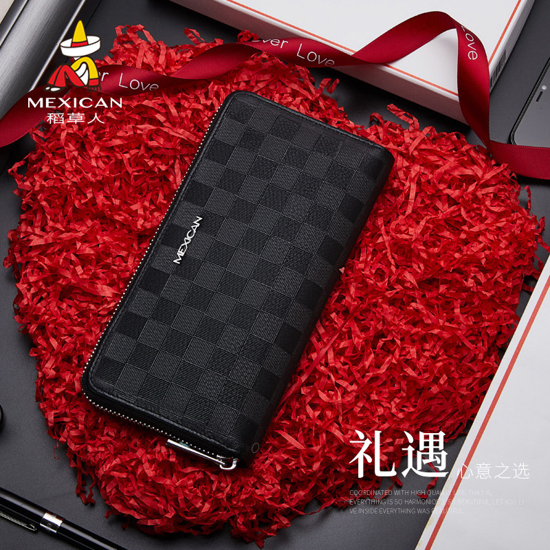 Rice Straw Man 2021 New Bull Leather Long Version Pull Chain Large Capacity Wallet Male College Student Leisure Upscale Brief