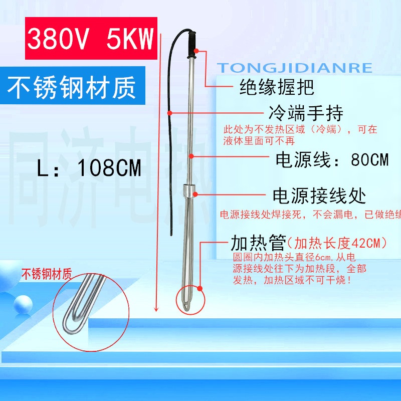 Portable chemical soy milk pan electric heating tube oil barrel heater stainless steel heating tube heating bar High power industry