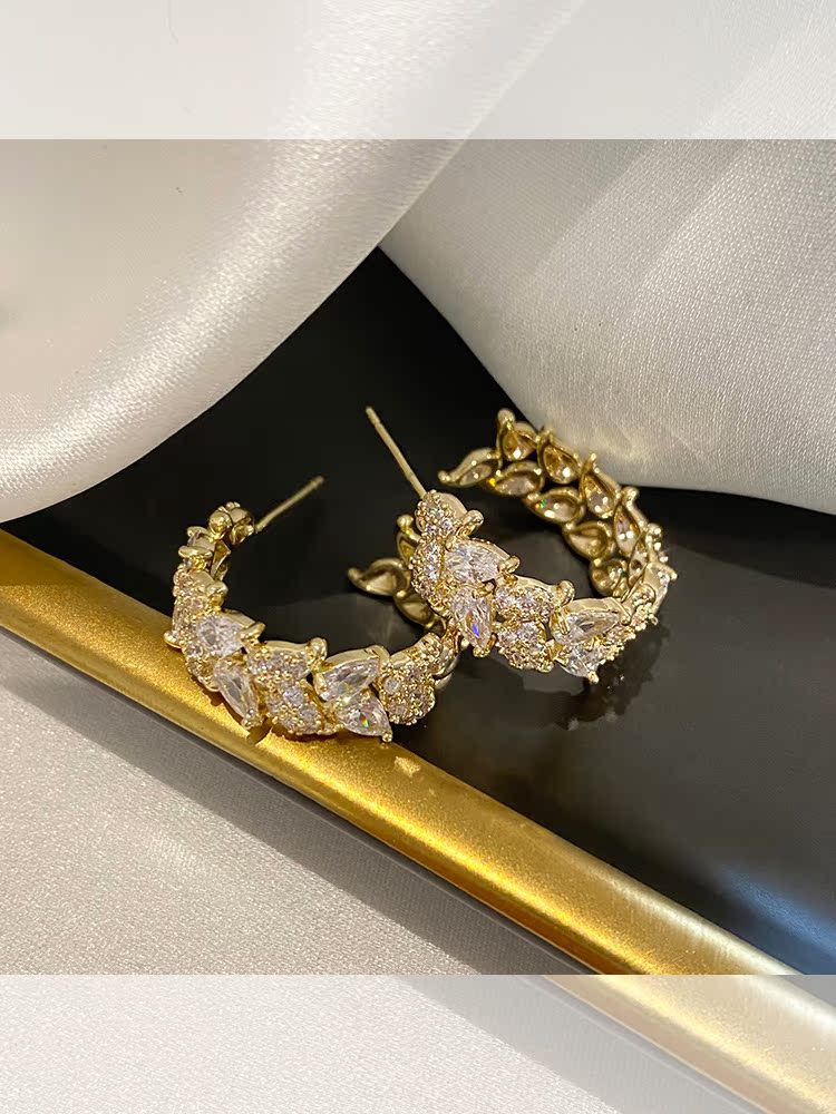 Full diamond leaf earrings 2021 new trendy earrings French style high-end earrings female Korean temperament light luxury earrings