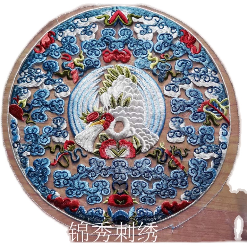 Qingdai Round Xiang Yunxian Crane Supplement Embroidery Pudding China Wind Hanfu Heavy Work Embroidery O Root Yarn Embroidery