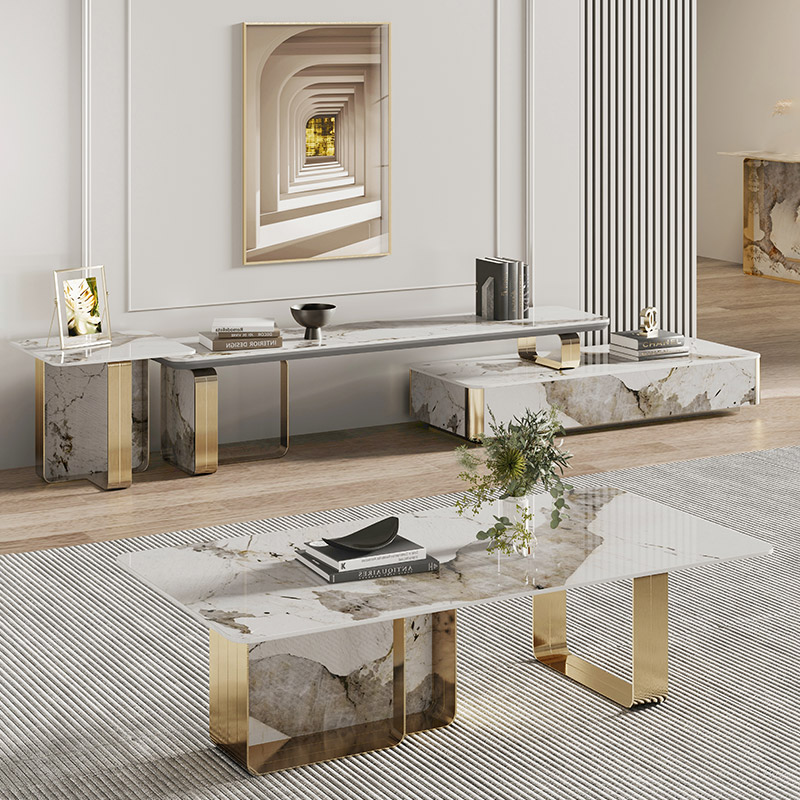 Light extravagant telescopic rock plate TV cabinet light lavish few (40 * 50 * 45) light lavish telescopic rock plate tea table