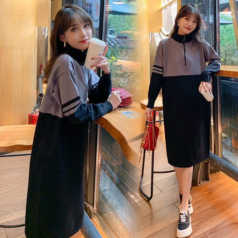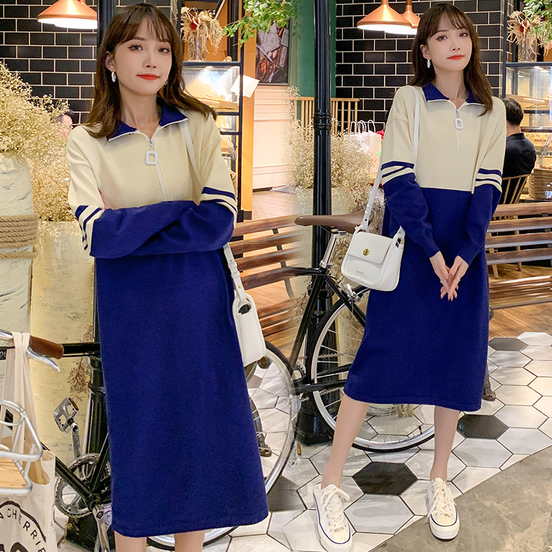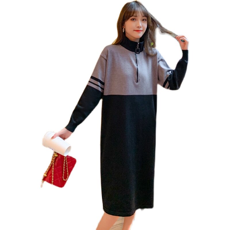 Autumn Winter's new Korean version of the Korean version with a long version of the long version with a knee-knit sweatshirt for the bottom-shirt woman