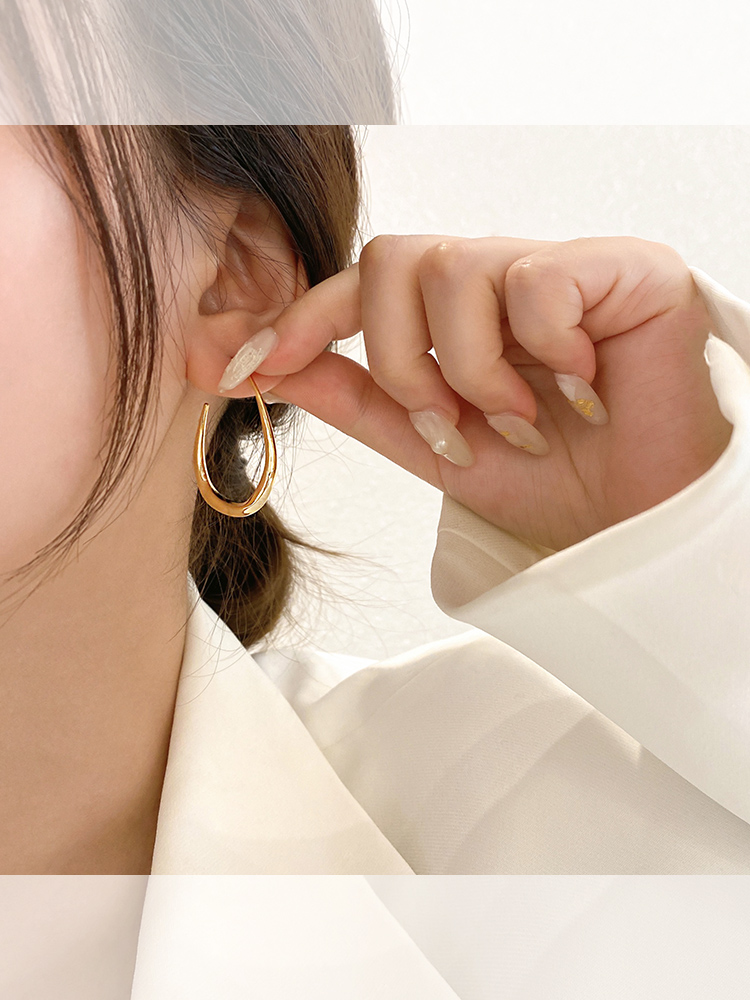 Metal texture egg-shaped earrings 2021 new trendy light luxury ear hook Korean minimalist style earrings Dongdaemun earrings