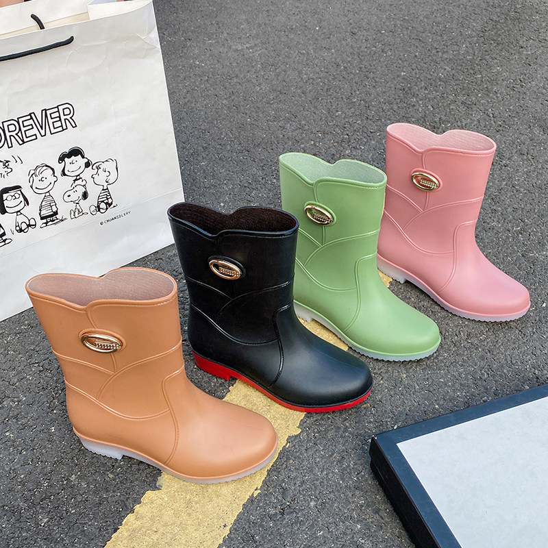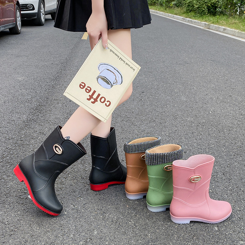 2021 new autumn and winter gush warm rain shoes women's fashion exterior wearing light and nice rain boots non-slip rubber shoes