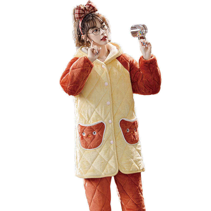Sleeping Lady Winter Thicken Plus Suede Triple Clip Cotton Coral Suede Warm Flannel Suede Home Suit Autumn Winter