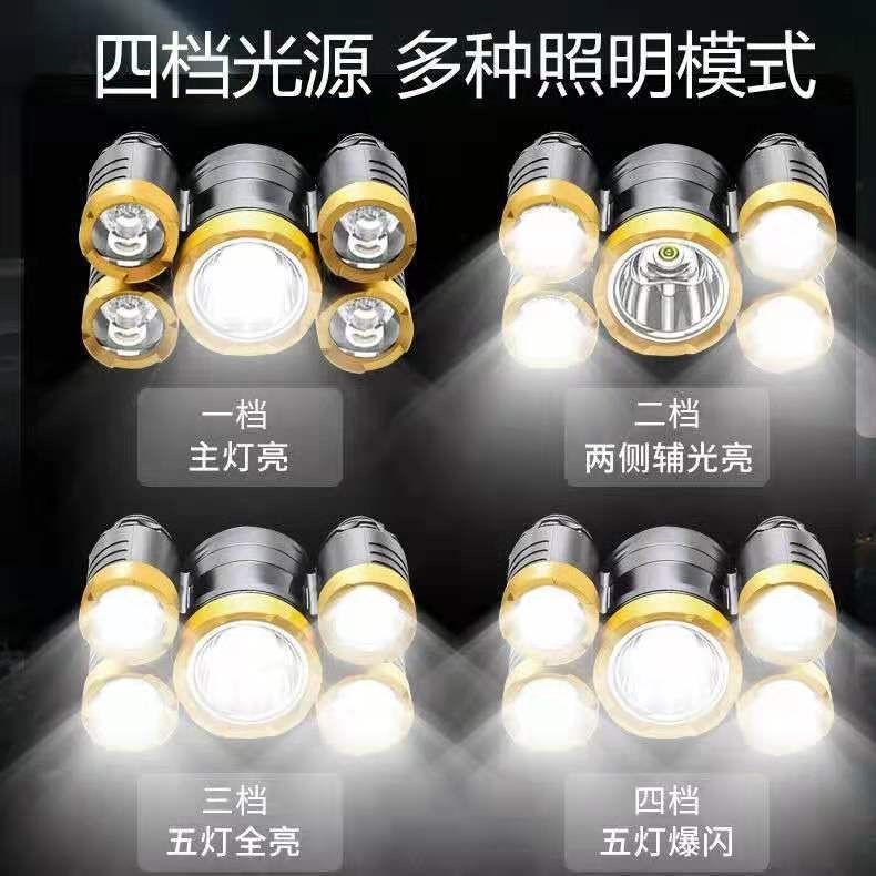 Five headlights strong light rechargeable fishing lamp headhead Ultra-bright long shooting flashlight lithium hernia lamp lithium battery