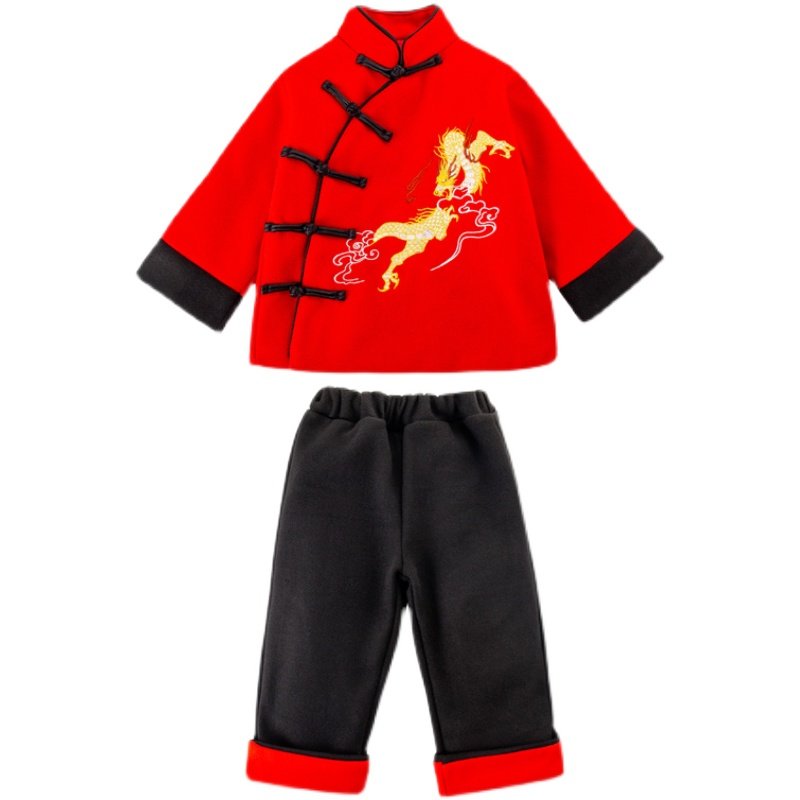 New Year's Day Children's Happy Costume to China Wind and Tang Costume Men and Men Children's New Year Children's New Year Early Childhood Kaimen Red Performance