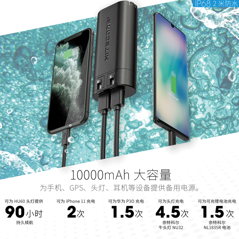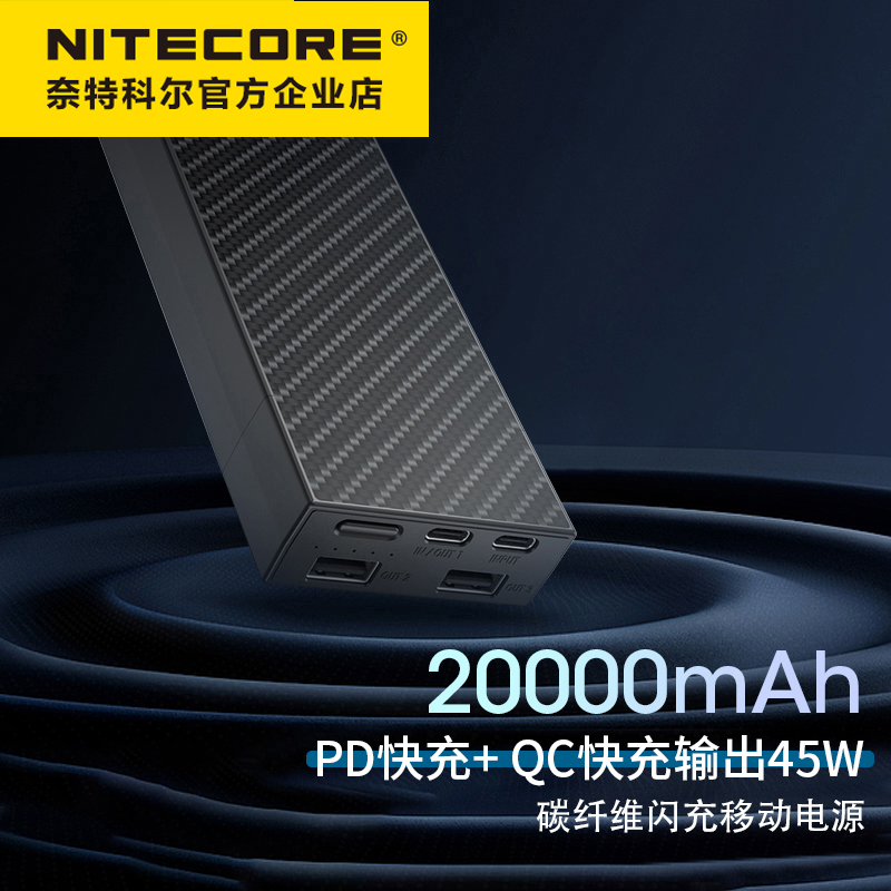 NiteCore NB20000mA Large Capacity Outdoor Mobile Power Mobile Charging Carbon Fiber Ultra Light