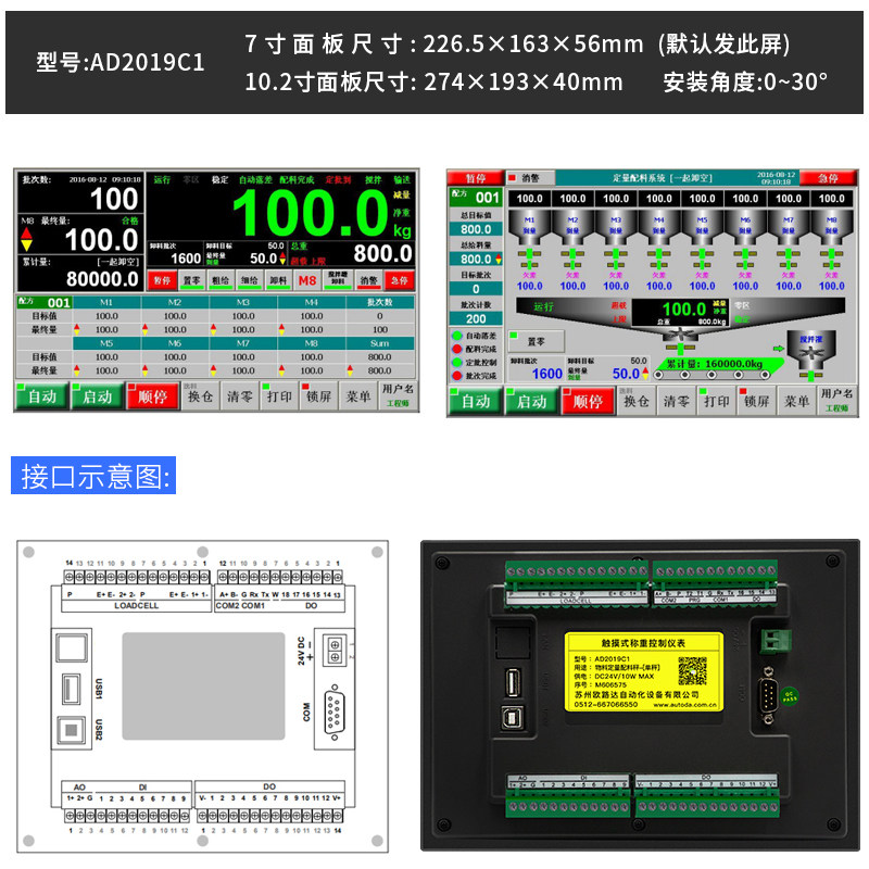 AD2019C1 (1-16 material) dosing controller AD2019C4 (scale four material) dosing controller non-standard