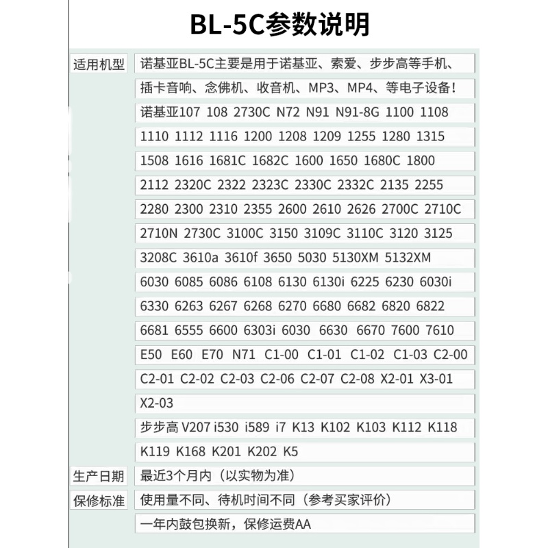 Radio BL-5C Lithium battery console NOKIA3100 5310 elderly mobile phone large capacity durable mobile phone