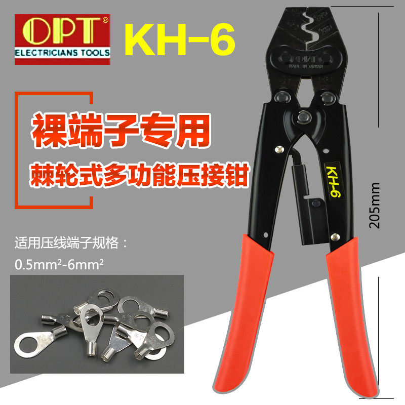 Taiwan OPT Manual Ratchet Type Terminal press pliers Line nose press pliers Bare Terminal press pliers KH-6 8