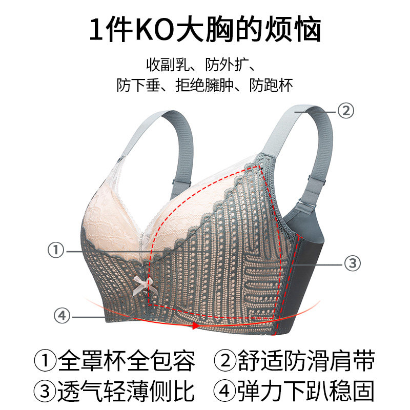 Large Chest Display Small Underwear Woman Thin section Anti-drooping collection Breast Fat Mm Bra Full Cups Latex Shrink Chest Large Size Underwear
