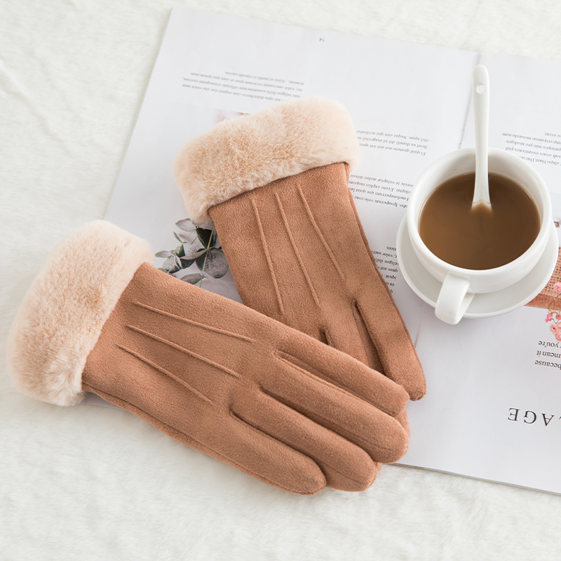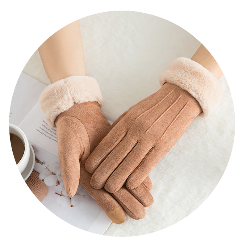 Autumn Winter Gloves Female Suede suede Suede Thickened Touch Screen Warm Windproof Anti-Chill Plush Gloves Student Bike Ride