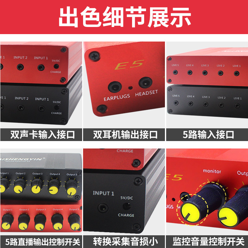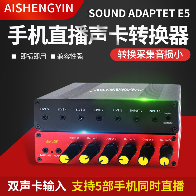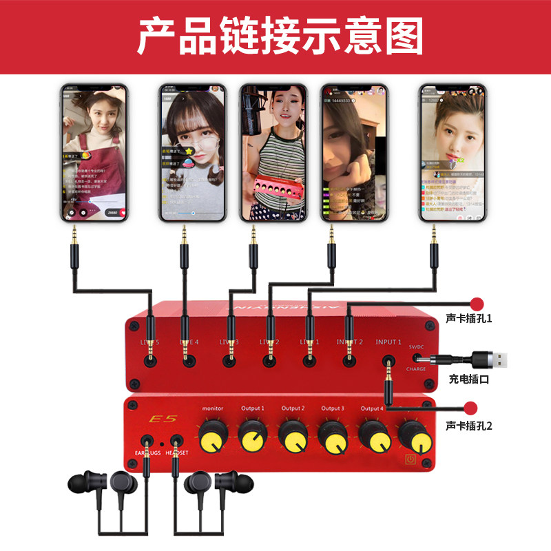 (multi-phone simultaneous live) sound card converter 5 five mobile phones simultaneously live with built-in external