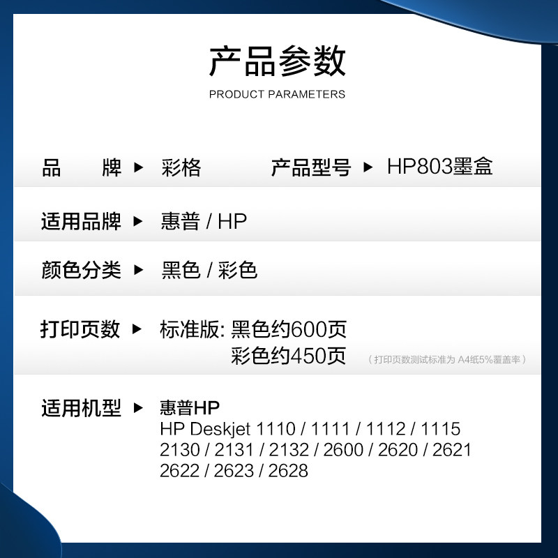 (Color Grid 254) for HP 803 ink cartridge HP2132 1112 2621 2622 2131 2600 2623 2130 2620 1110 black color printer connected to DeskJet
