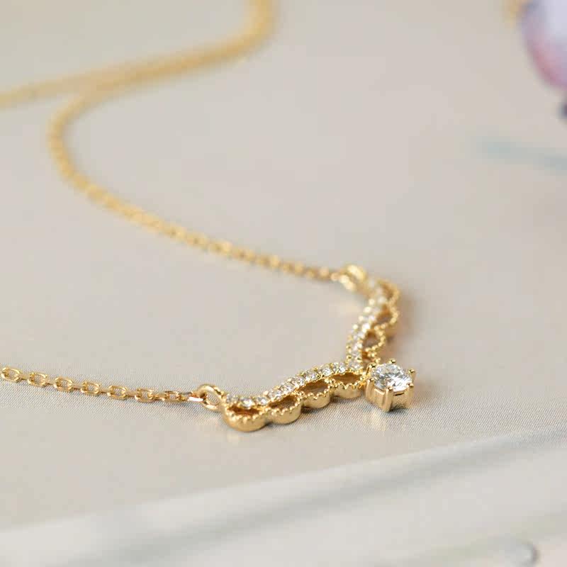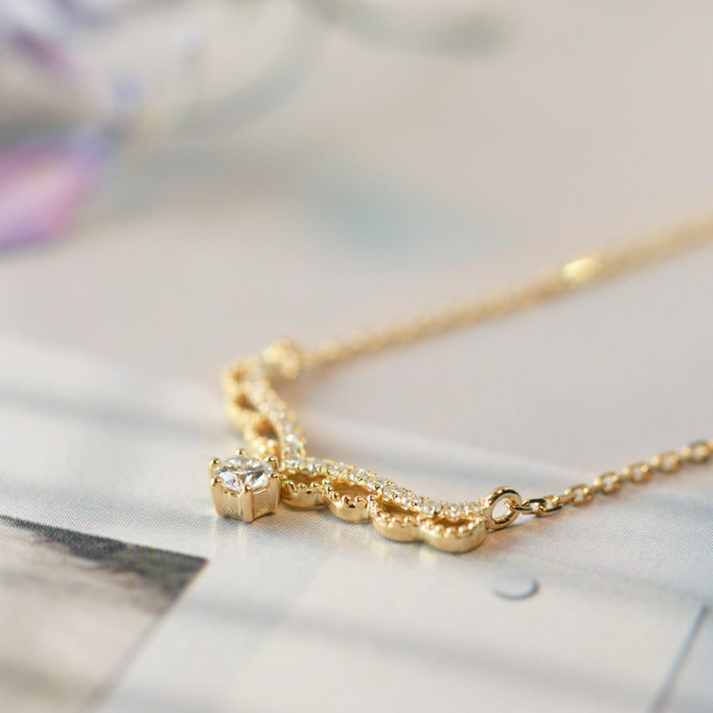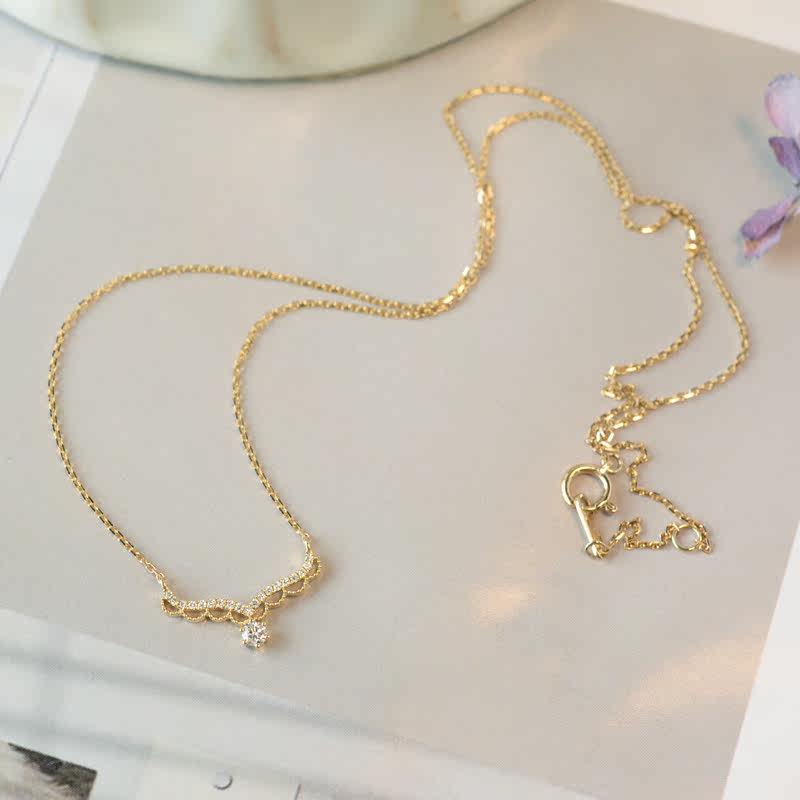 Lace side Japan design 18K gold high-quality group inlaid diamond integrated necklace with beautiful