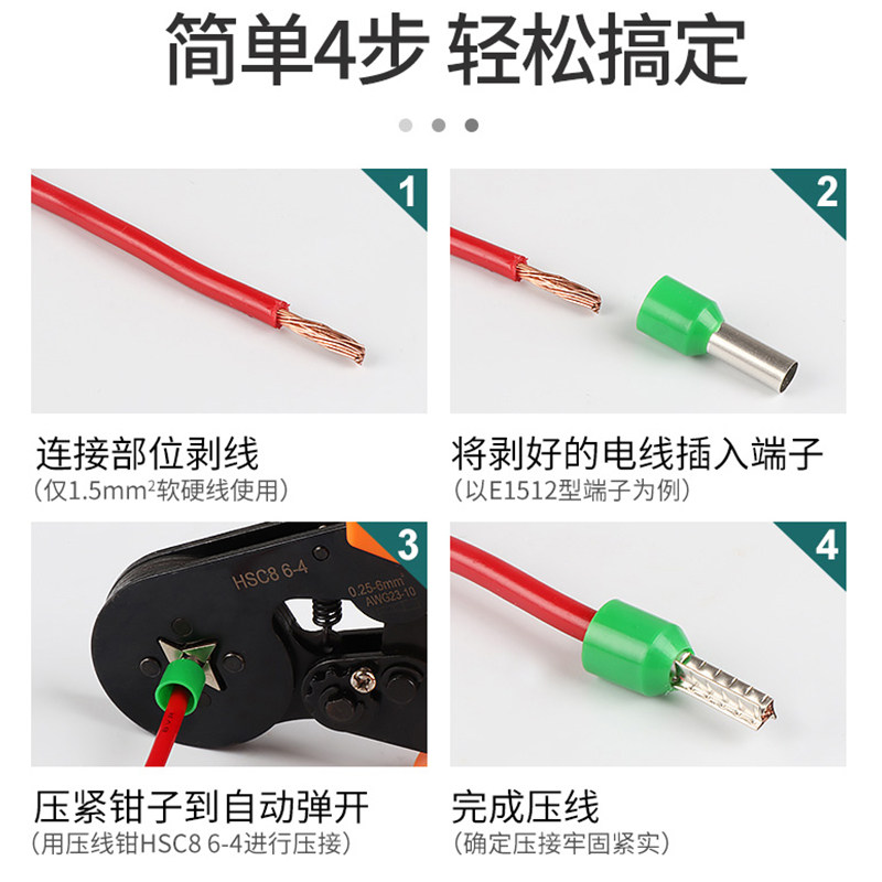 Tube type terminal terminal VE1508 European copper press nose nose needle - type pre - insulated terminal
