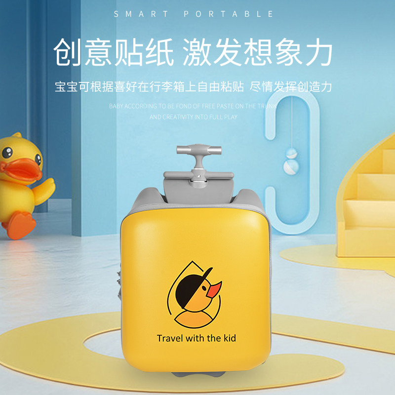 qbox small yellow duck children's suitcase pull-lever box can take a ride on a suitcase with a traveler's traveler's deity check-in