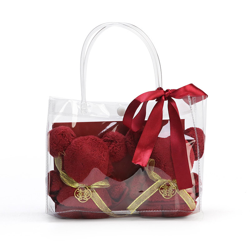 My travel wedding dowry towel a pair of cute red festive cotton face towel gift box full moon wedding gift