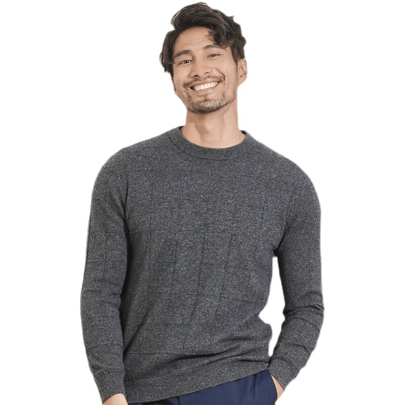 Ordos Produce Winter Upscale 100% Pure Kashmir Sheep Sweatshirt Male round collar fashion Thickened Knit Fur Coat Tide