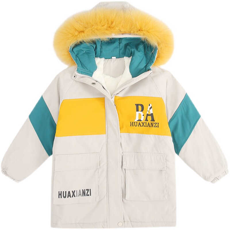 Girls cotton cotton winter dress 2023 new children thickened up and long washing coat in large children's warm clothes