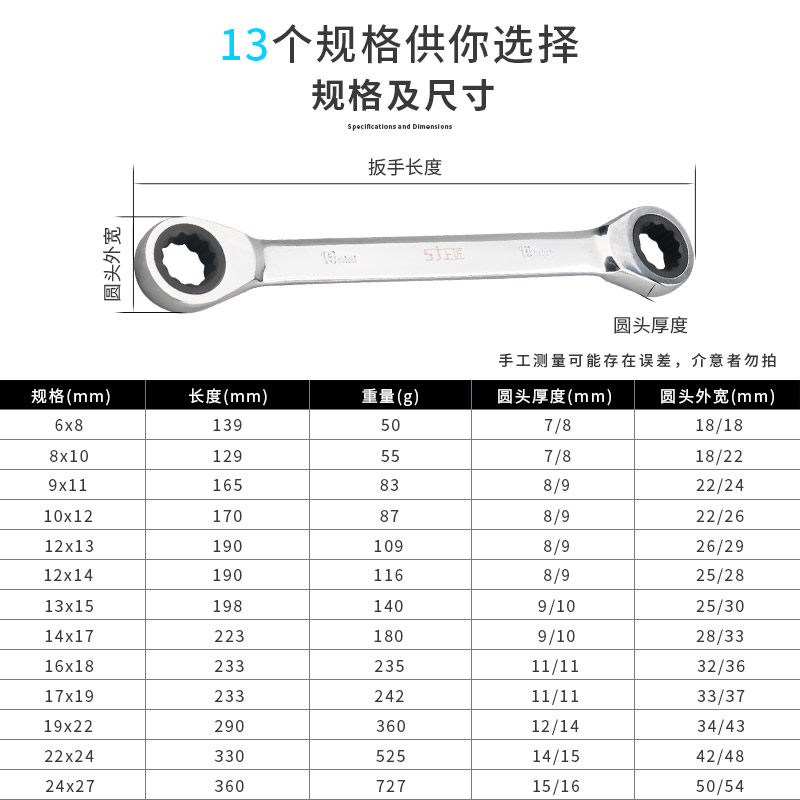 Upper artisan double head ratchet wrench (6X8) upper smith double head ratchet wrench (8X10) upper smith double head ratchet wrench (9X11) upper smith double head ratchet wrench (10X12)