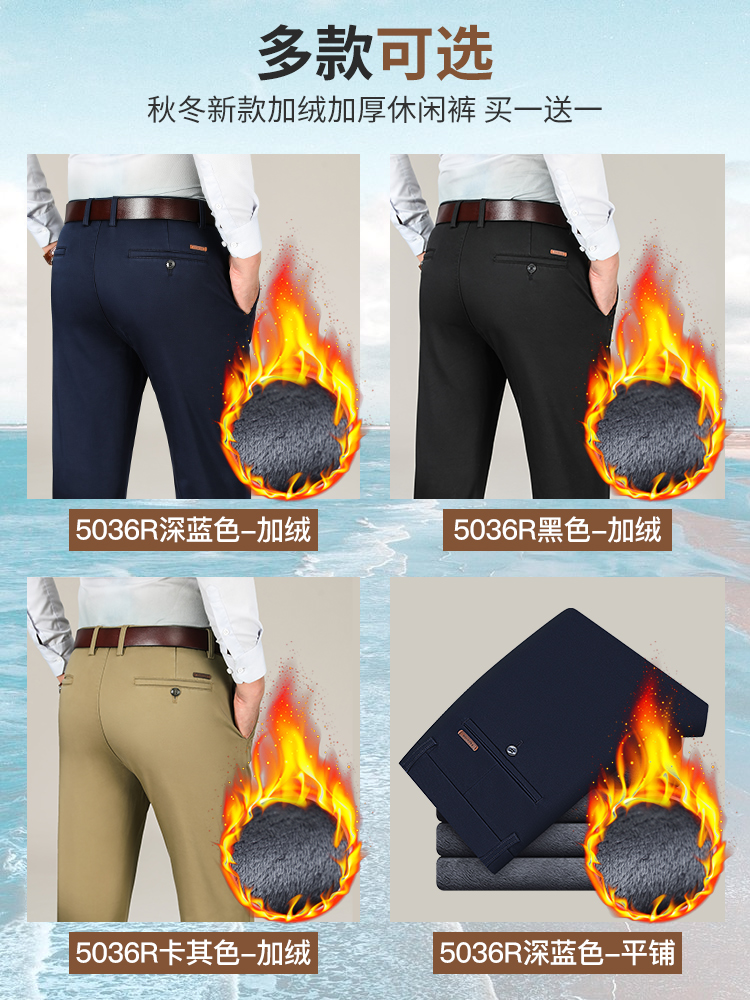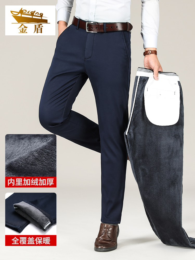 Golden Shield Men's Casual Pants Plus Velvet Thickened Winter Business Trousers Men's Middle-aged Dad Warm Pants Men's Autumn and Winter Models
