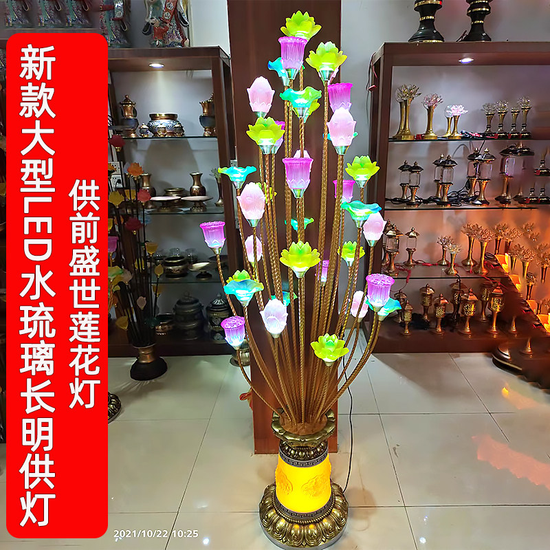 Bao Yurim Large temple lotus lamp Buddha for lamp Buddha Hall on the floor Changming lamp Buddha front for the lamp led Seven color Buddha lamp