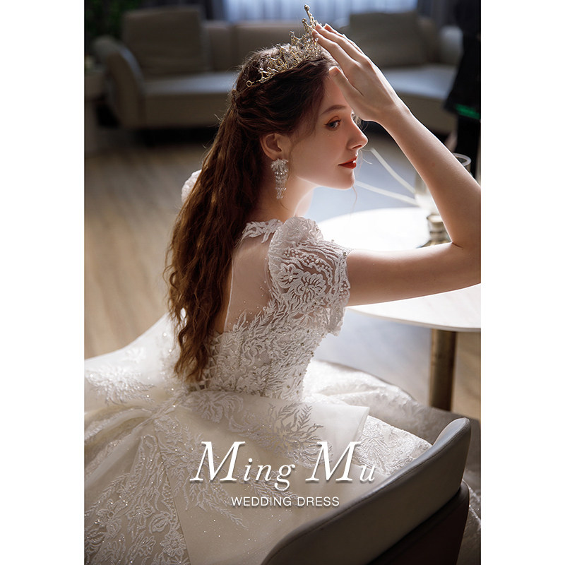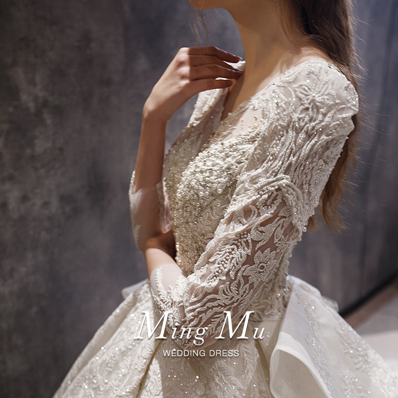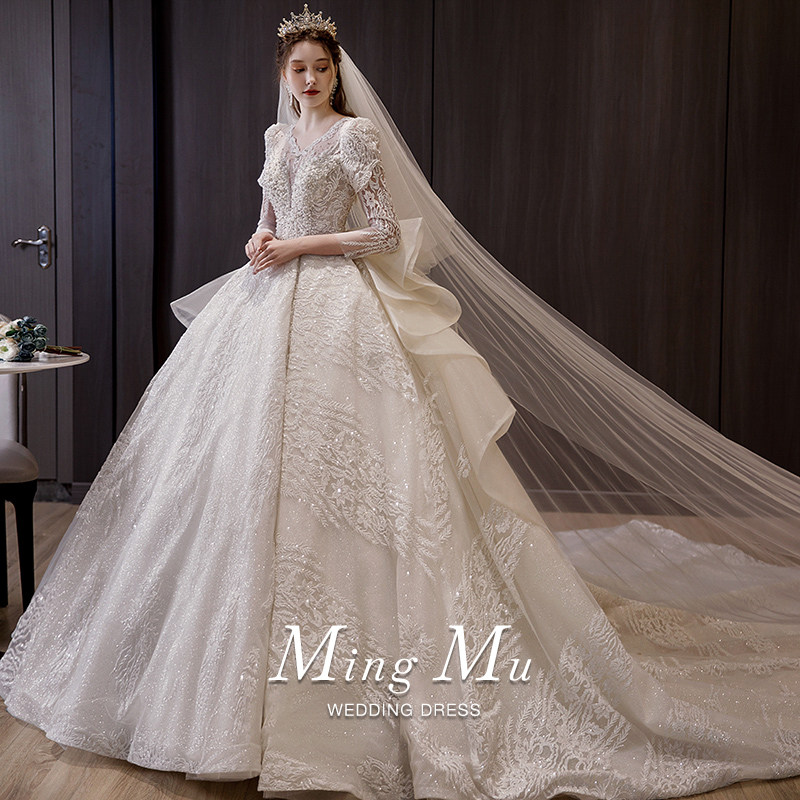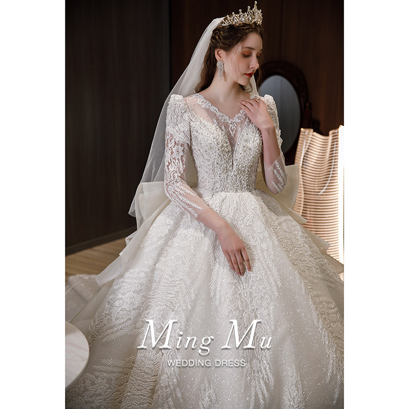 Long sleeve French style main wedding dress 2021 Bride new small Heavy work trailing palace Extravagant Luxury high quality Texture Women