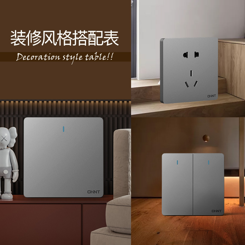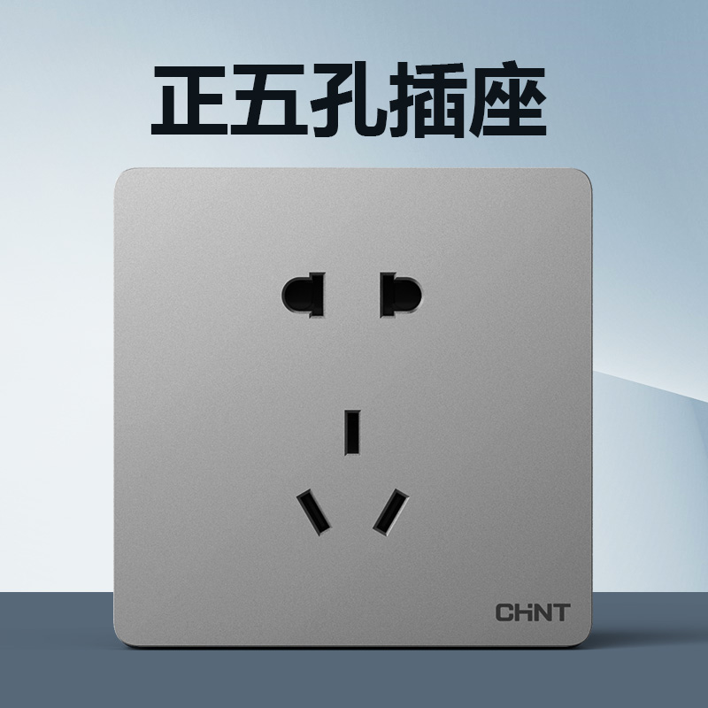 Chint household five-hole socket kitchen light luxury dark gray 86-type bedroom plug-in power golden switch panel