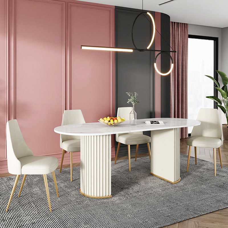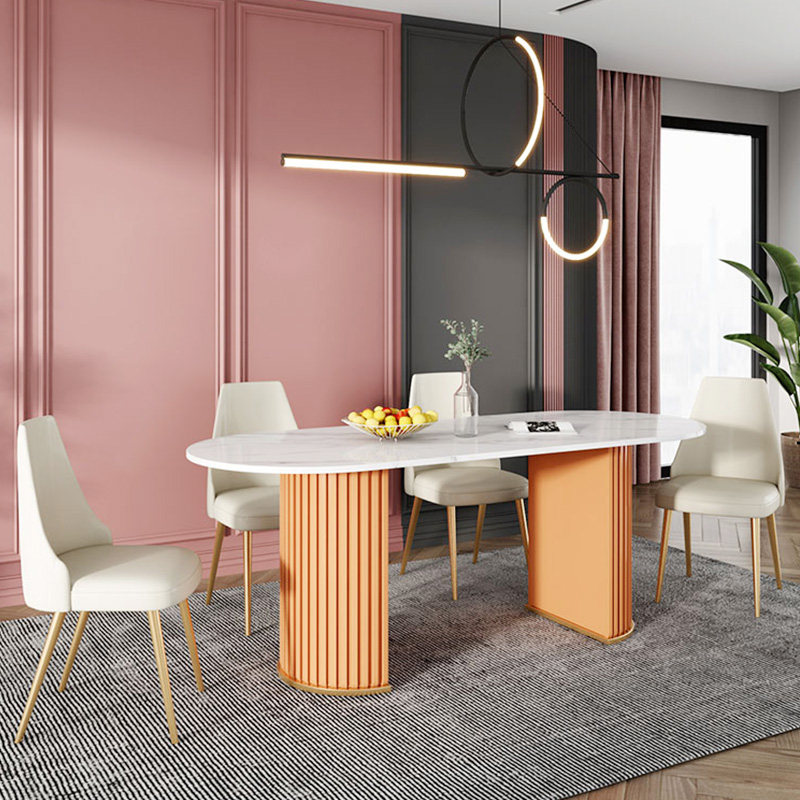 Nordic slate dining table and chair combination creative design oval dining room light luxury living room home dining table and chair simple
