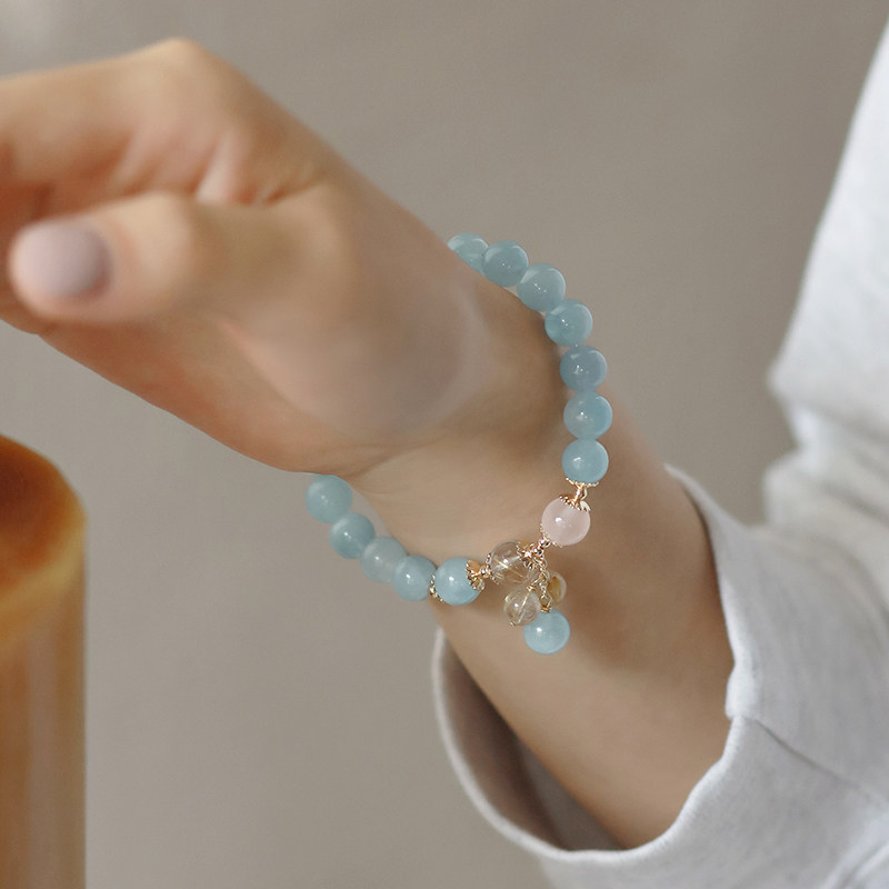 Sea Blue Treasure Handmade Female small crowdsourced natural crystal beads Beads Pink crystal blonde handstring girlfriends Gift Ornaments