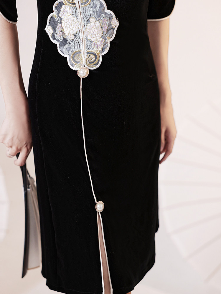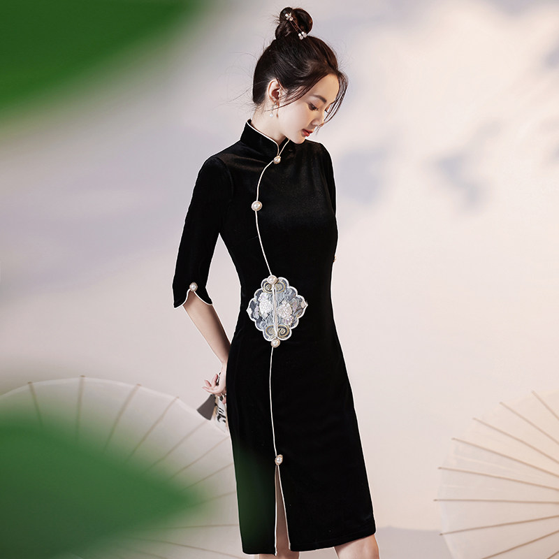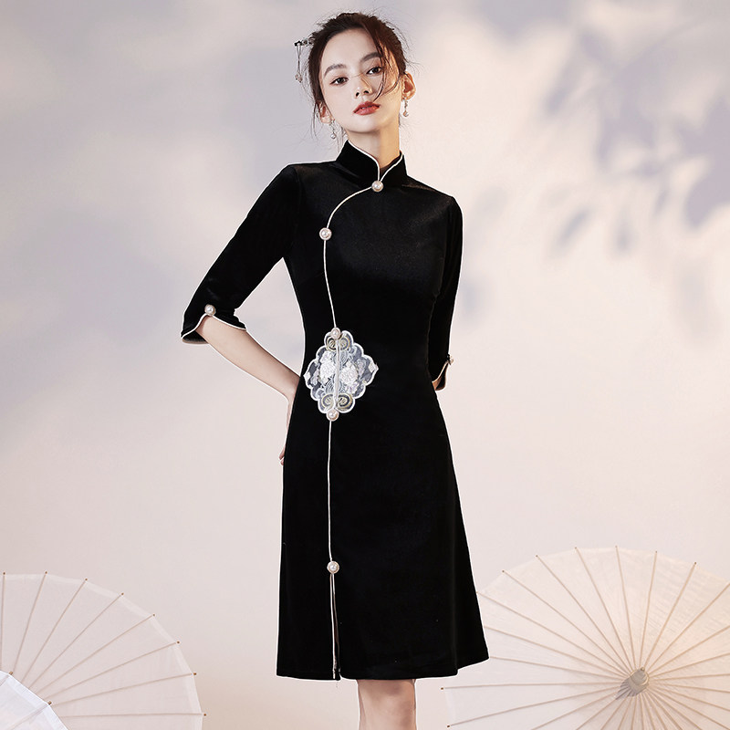 Black Qipao Women's Autumn Winter 2022 New Everyday Youthful Models Improved National Tide Fried Street Short Sleeves Chinese Wind