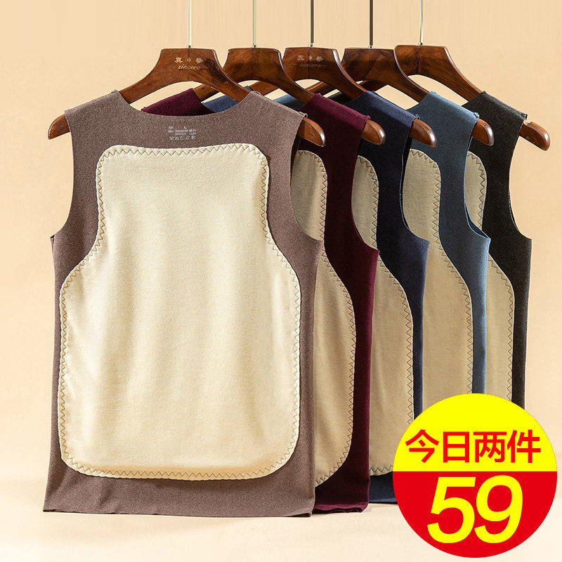 No-scratches warm vest men's autumn winter wear dush fever plus suede thickened mid-aged protective waistcoat waistcoat
