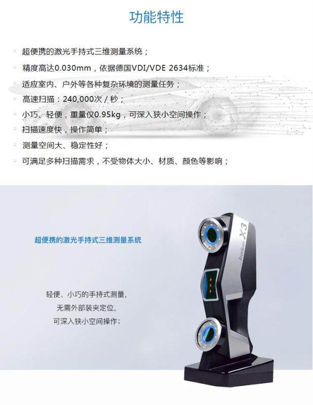 3D scanning instrument FreeScanX3 X5 X7 X7 laser three-dimensional scanning instrument high precision color industrial grade