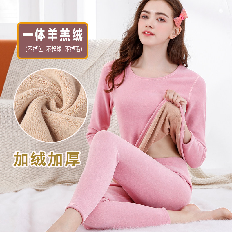 Integrated lamb velvet fever coat gushed with velvety thickened fever autumnics sanitary pants Thing body sweaters undershirt winter