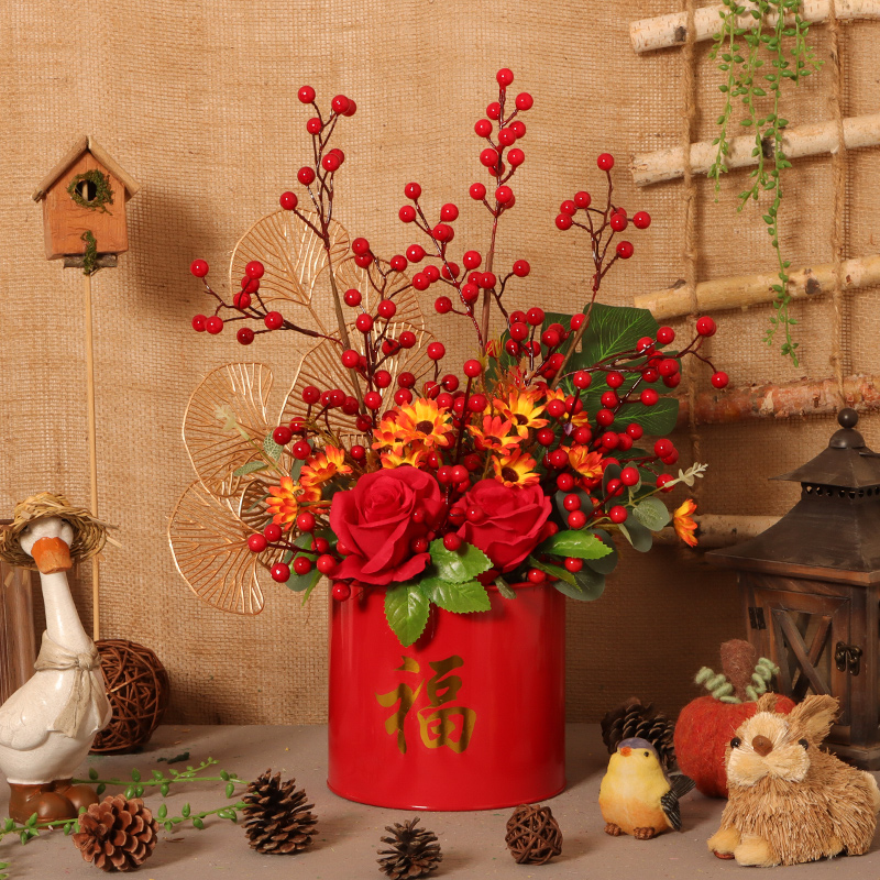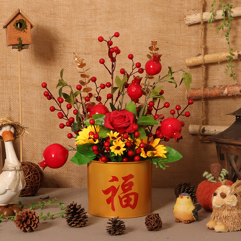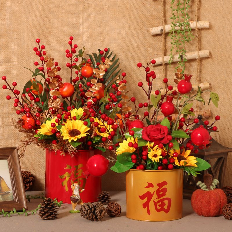 Wedding Fu Barrel Fortune Fruits Emulation Flower Living Room Fake Flower Decoration Flowers Joe Relocation New Residence Table Flowers New Year Flower Arrangement Pendulum Pieces