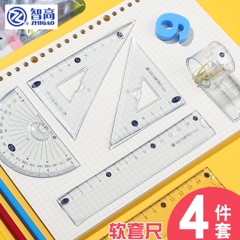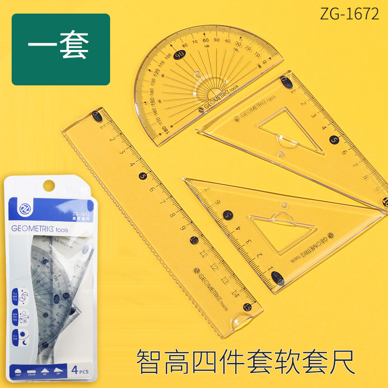 Soft ruler four pieces of soft ruler 15cm Adolescent Hearts Ruler 30cm Soft-folding ruler Drawing sleeve Ruler Triangular Ruler Elementary School Kids Triangle plate Cornetto functional stationery Wave 1st grade Protractor