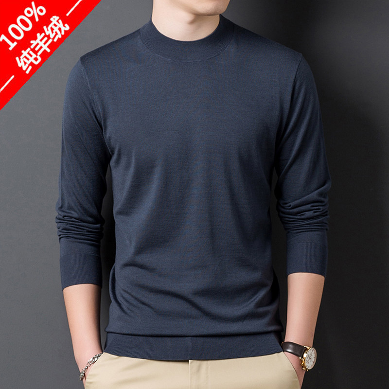 Ordos city ultra-thin fine-spinning pure cashmere sweater for men's half-height, sweater in spring and autumn close-knit sweatshirt