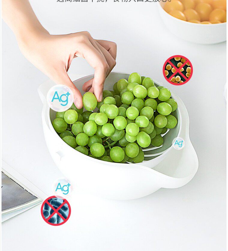 Tea Flower Europlatinds * Coincidentally Leached Silver Silver silver Antibacterial Double Drain basket Kitchen Vegetable Basin Living-room Fruit Dish