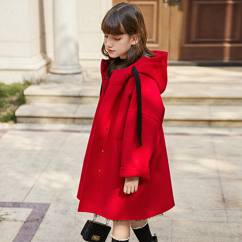 The girl's fur coat autumn winter 2021 new foreign pie winter children great children red bifacial cashmere big clothes children clothes