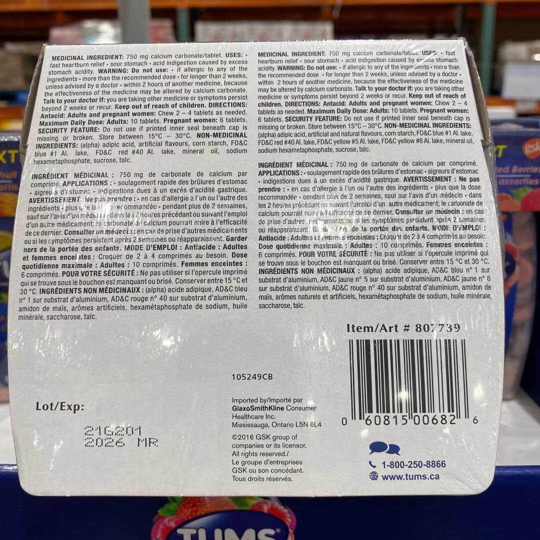 Canadian direct mail Tums pregnant women calcium tablets relieve gastric acid chewable tablets 100 capsules
