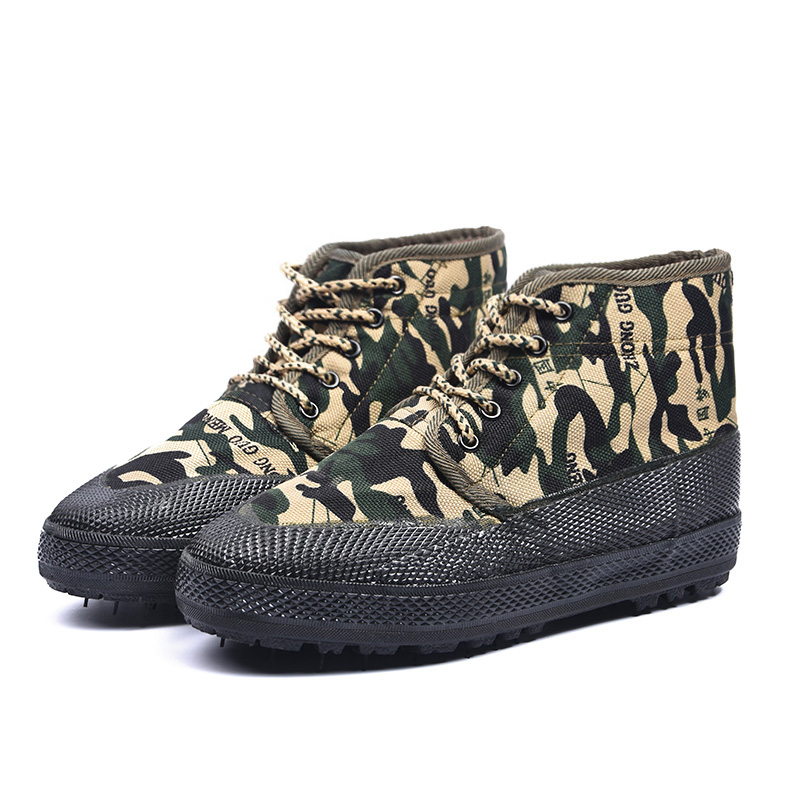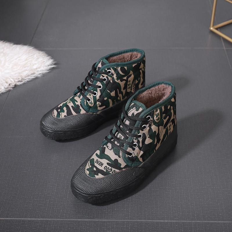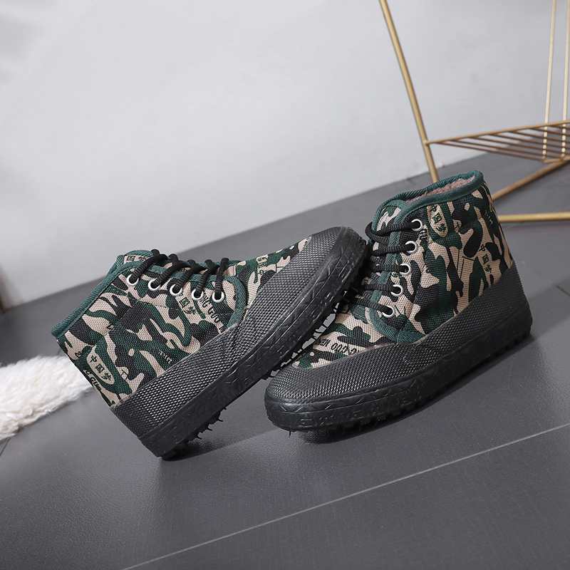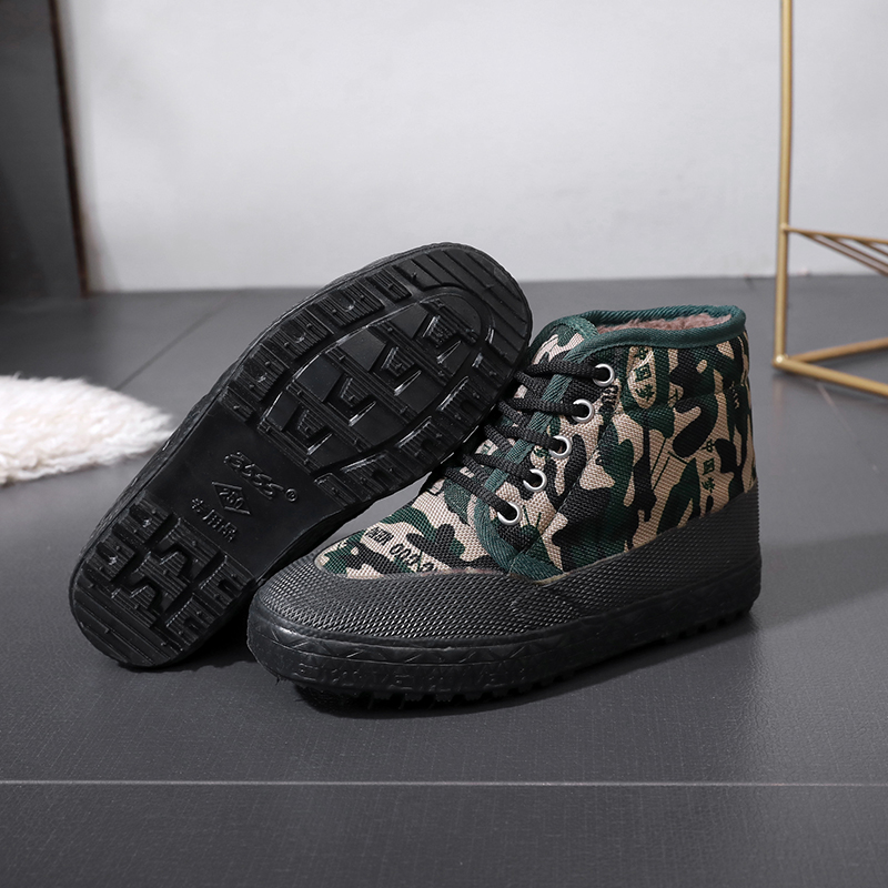 Winter cotton shoes plus velvet thickened camouflage labor insurance cotton shoes men's training liberation shoes cold storage construction site waterproof high-barrel rubber shoes