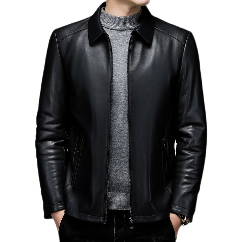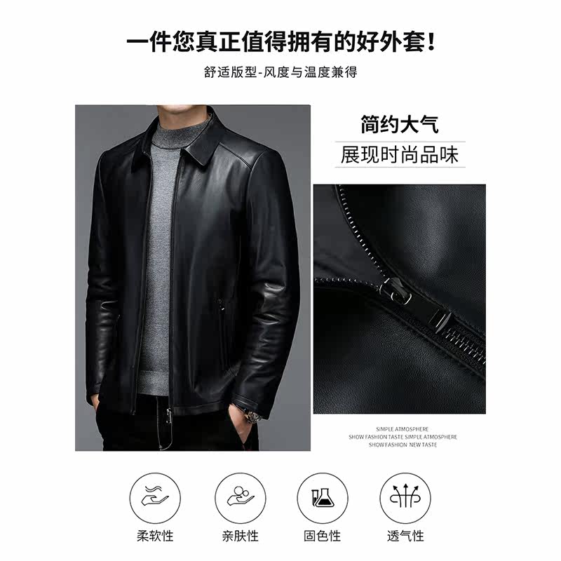Ordos winter thickened high-grade mulberry silk inner jacket men's middle-aged lapel business sheepskin jacket